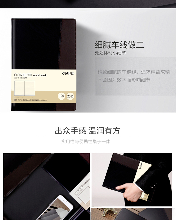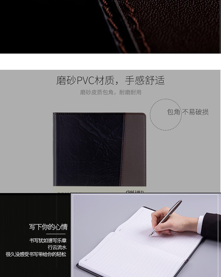 得力(deli)25K120張時(shí)尚撞色商務(wù)皮面本 會(huì)議記事本日記本筆記本子文具辦公用品 7911 自營(yíng)