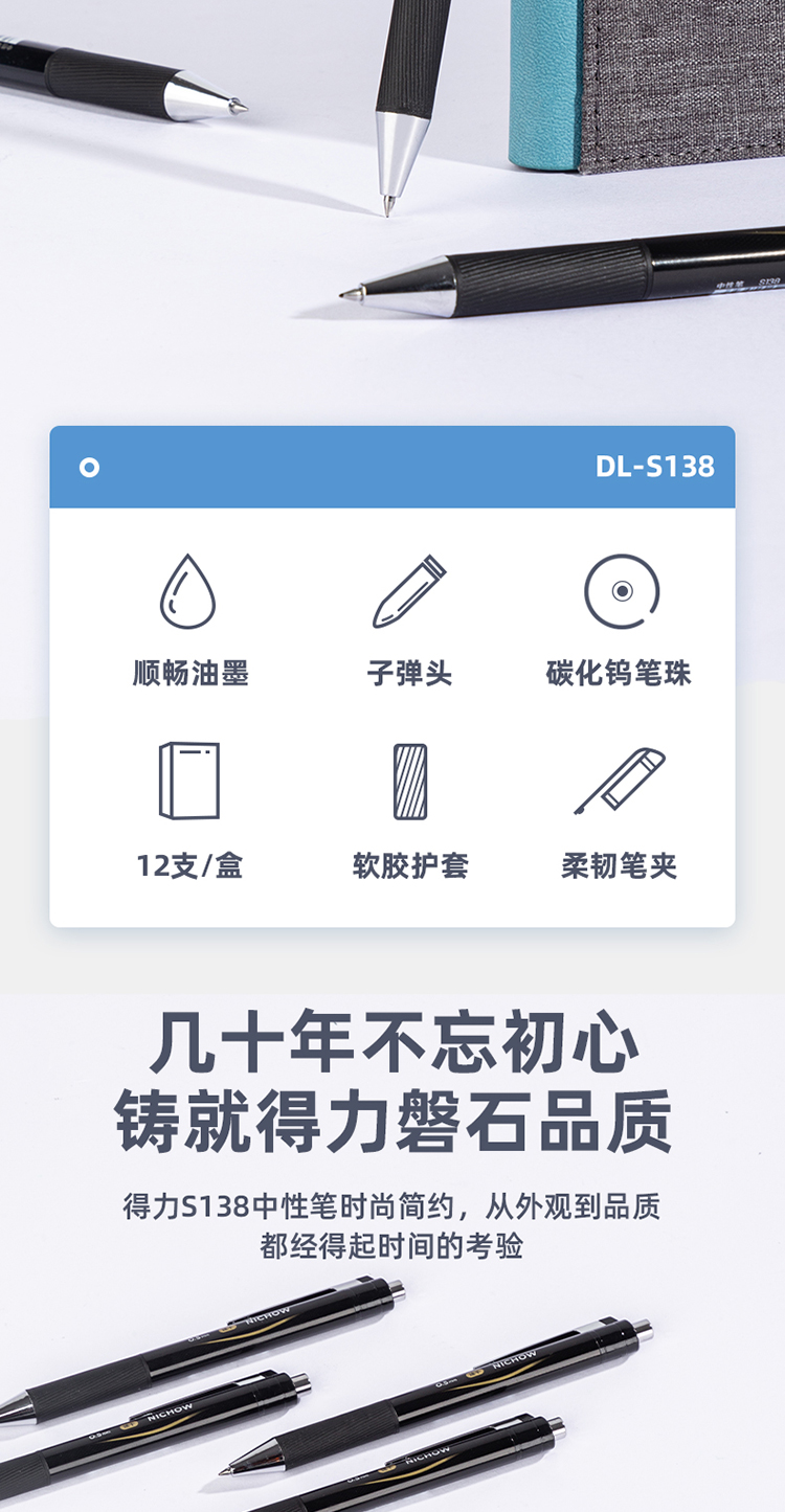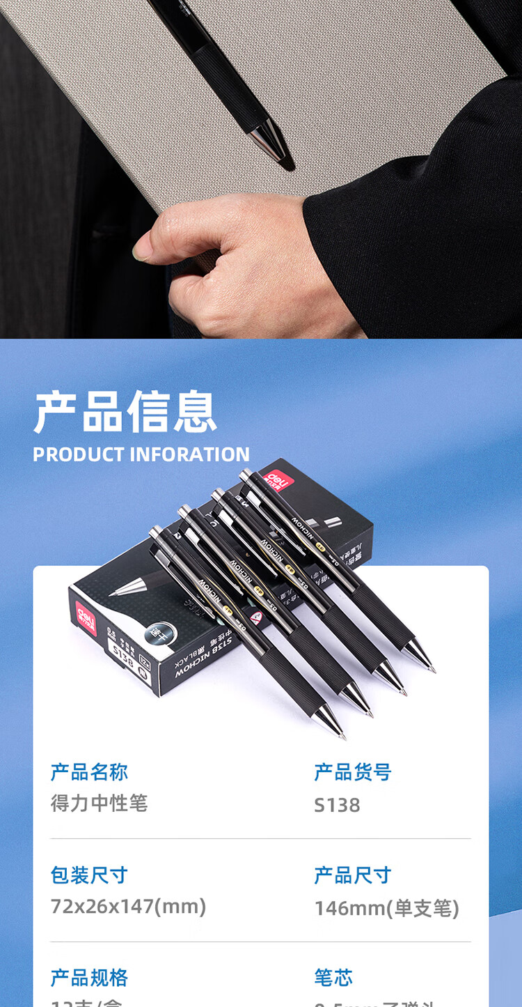 得力(deli)諾上速干按動(dòng)中性筆簽字筆12支 子彈頭0.5mmDL-S138 自營(yíng)