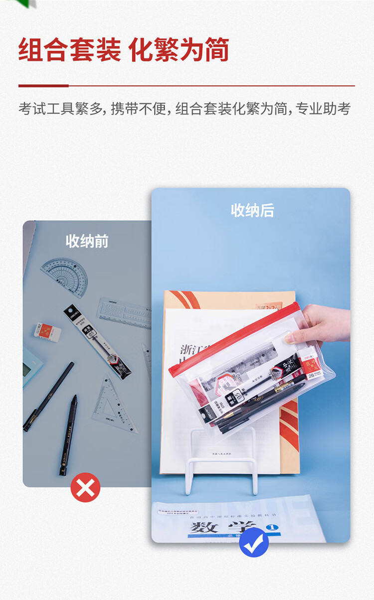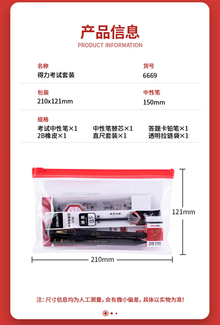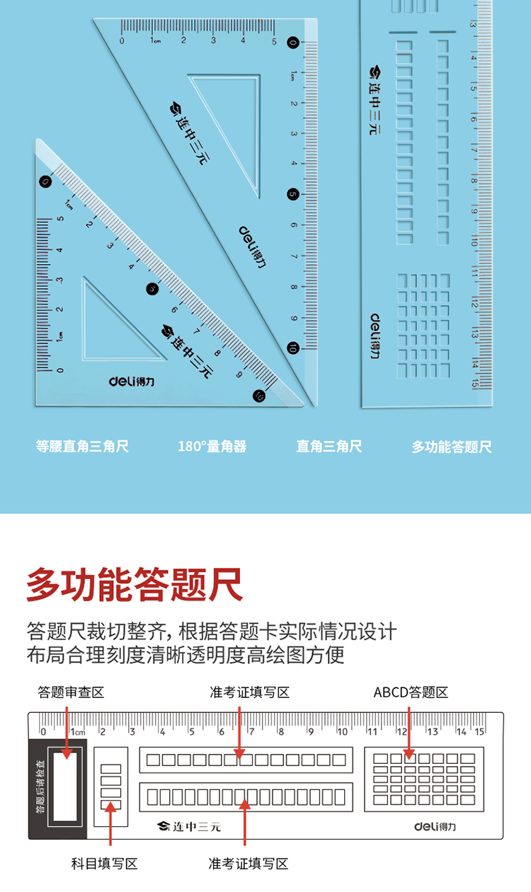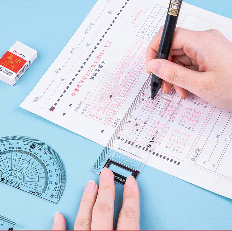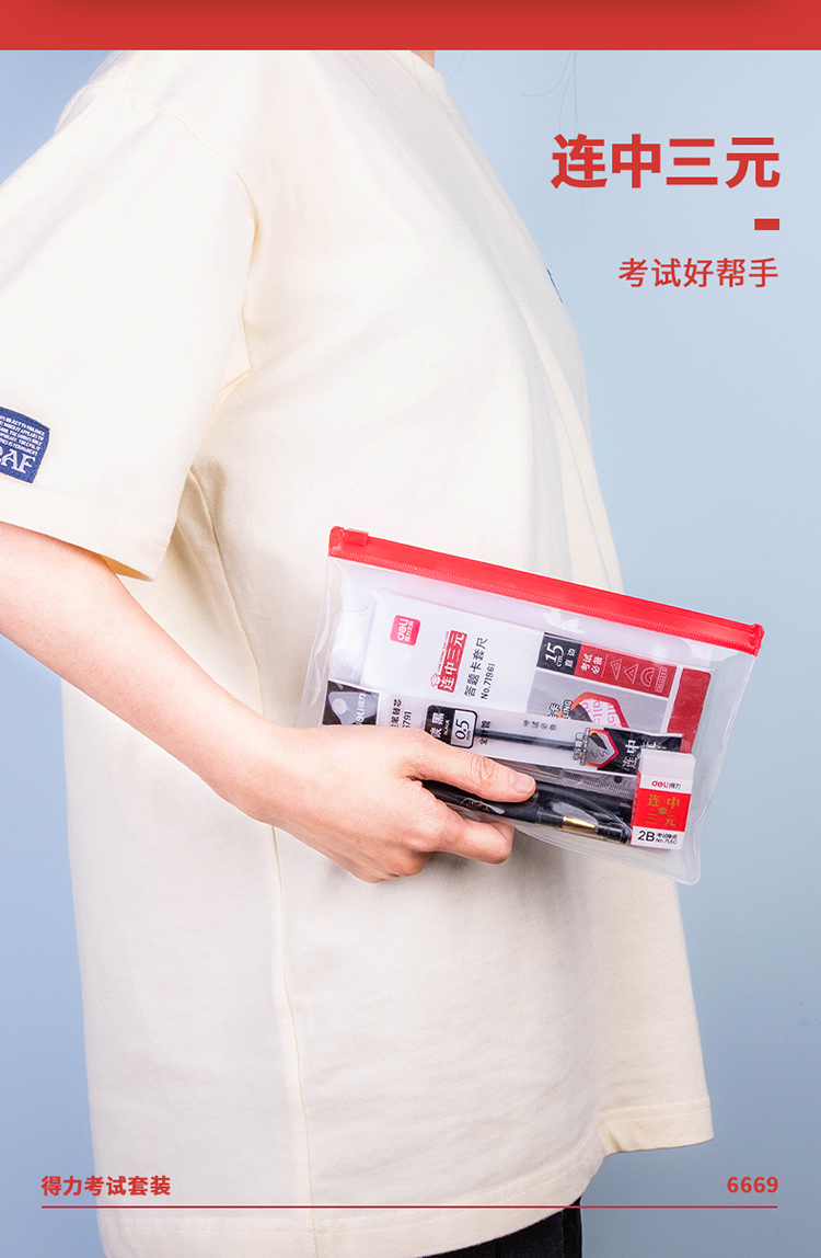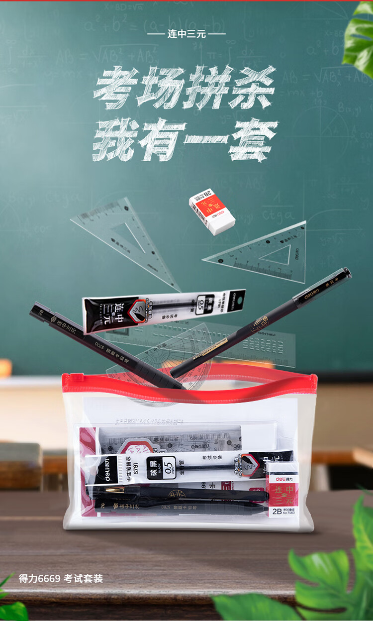 得力(deli)連中三元考試套裝 中性筆 替芯 涂卡筆 橡皮 直尺套裝DL-6669 考試用品 自營
