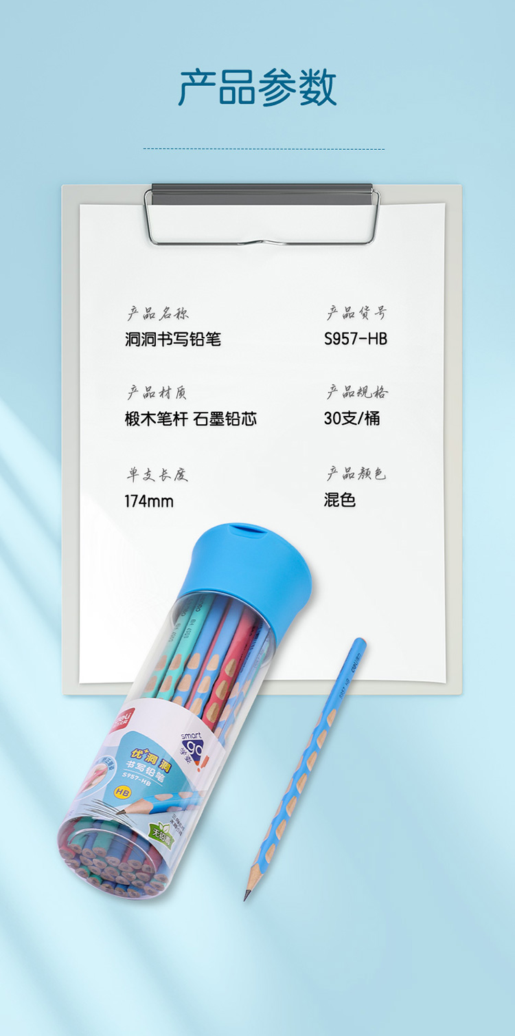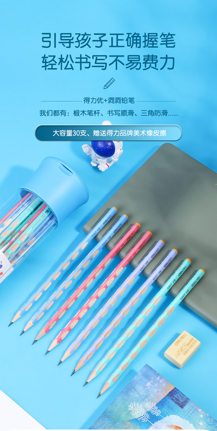 得力(deli)洞洞筆鉛筆 30支HB三角桿彩桿易抓握書寫鉛筆兒童矯姿鉛筆 學(xué)生練字筆 開學(xué)禮物S957-HB 自營