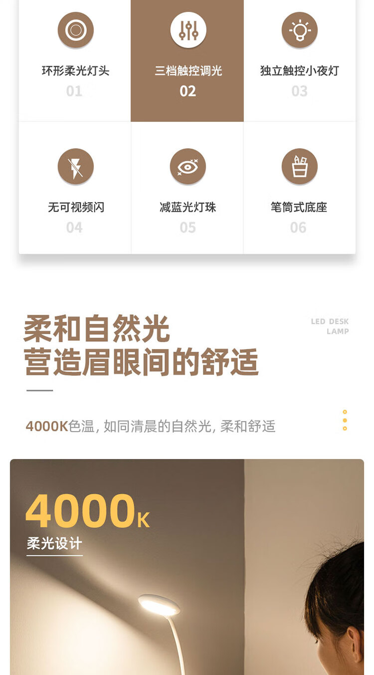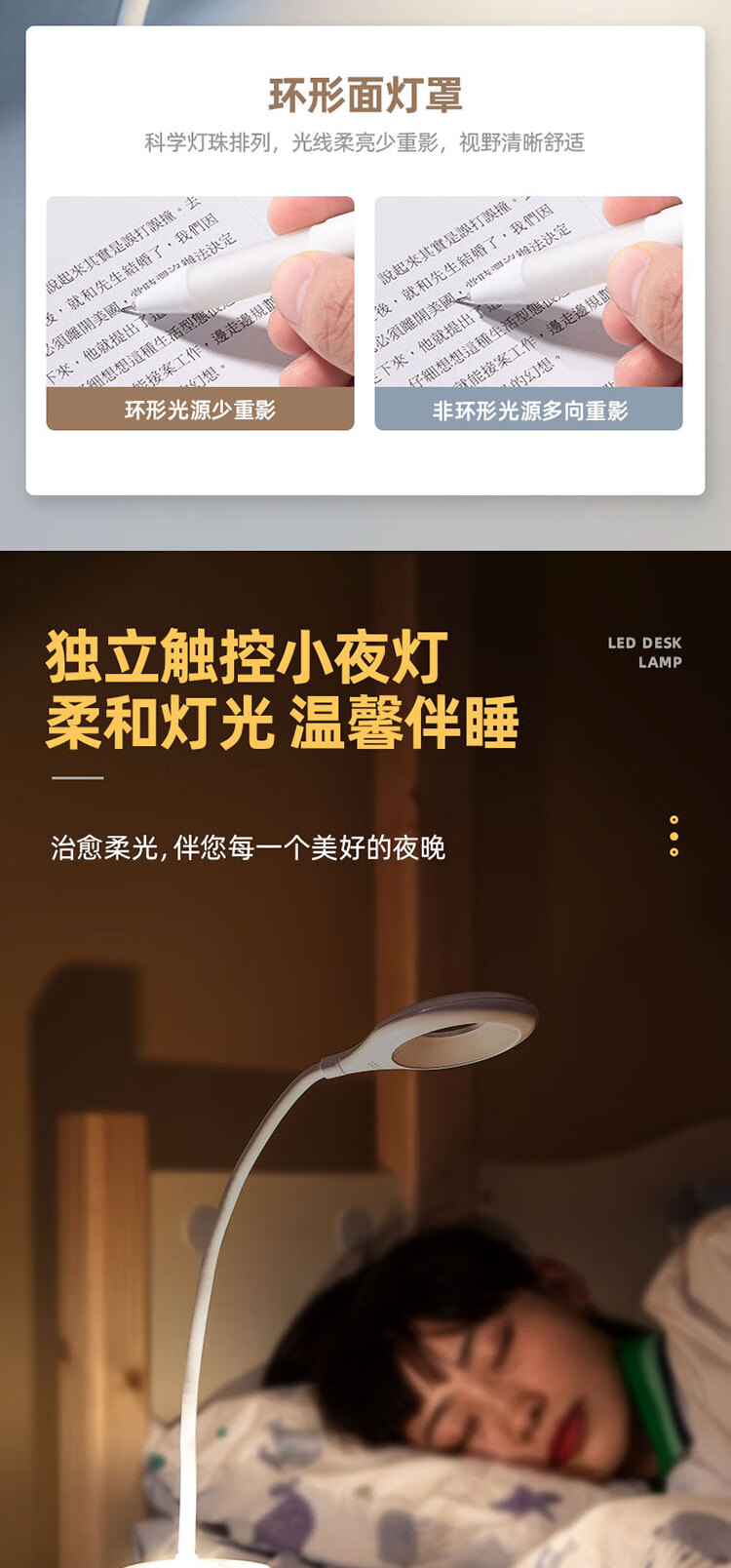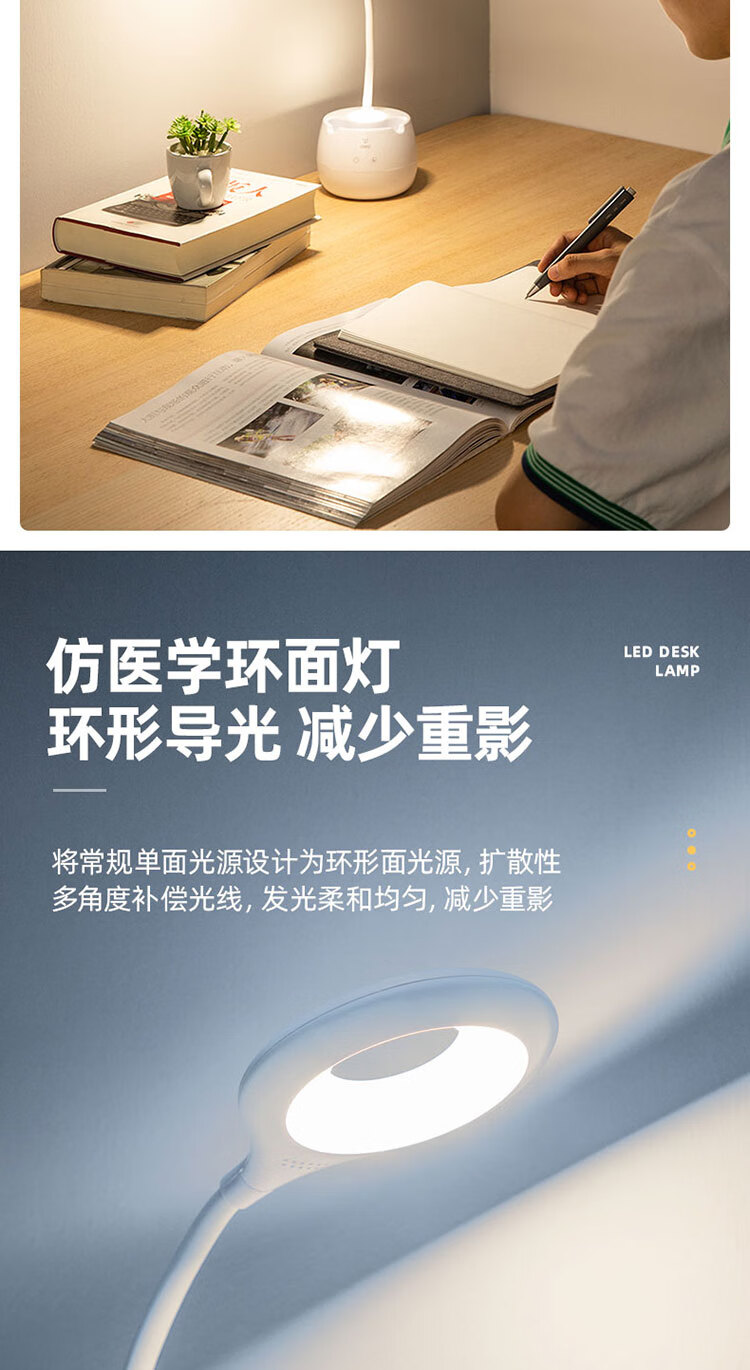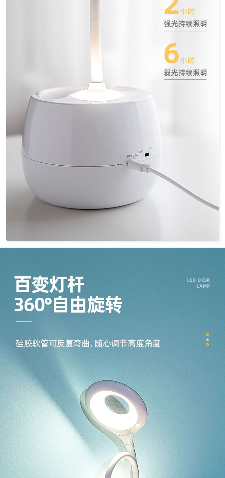 得力(deli)帶筆筒創(chuàng)意護(hù)眼臺(tái)燈 3檔調(diào)節(jié)可當(dāng)夜燈 白4326 自營