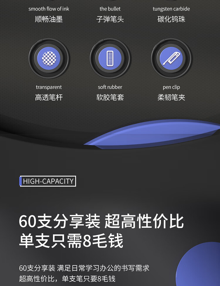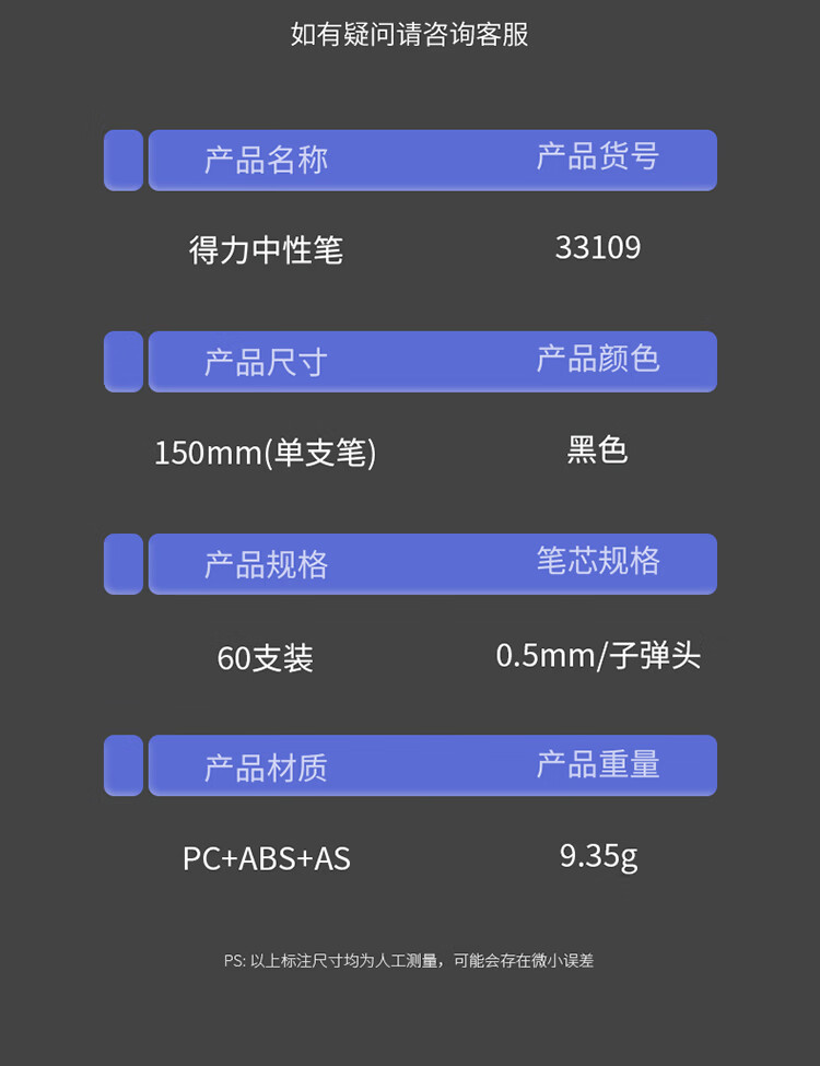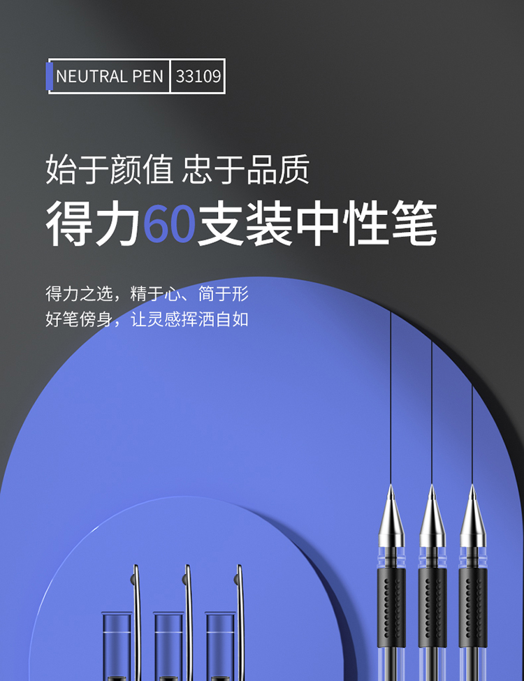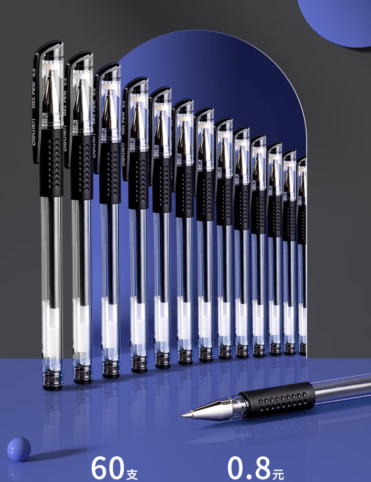 得力(deli)60支0.5mm中性筆簽字筆水筆 子彈頭黑色33109 辦公用品 自營